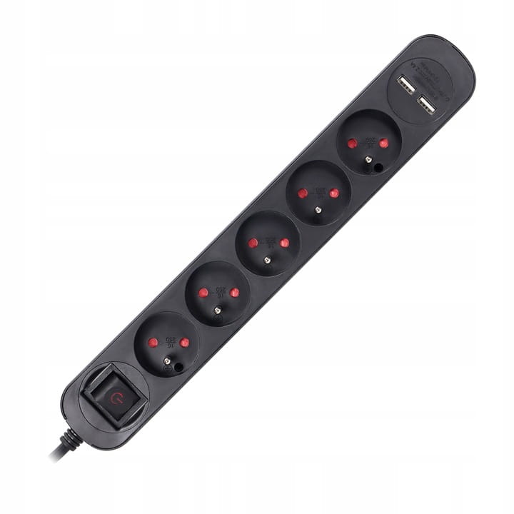 Listwa przeciwprzepięciowa Virone PS-1/B/1,5M z dwutorowym, podświetlanym wyłącznikiem posiada 5 gniazd sieciowych (2P+Z) z uziemieniem, 2 wejścia USB oraz wygodną, płaską wtyczkę. Świetnie sprawdzi się do użytkowania z gniazdkami położonymi w trudno dostępnych miejscach (np. za meblami). Listwa skutecznie zabezpiecza podłączony sprzęt przed skokami napięcia spowodowanymi warunkami atmosferycznymi lub awariami sieci.
