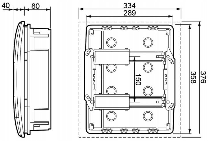• Wymiary skrzynki podtynkowej: 289  x 358  x 80 mm