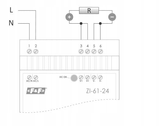 F&F ZI-61-24V Zasilacz impulsowy 60W, Uwe 185-265V AC, Uwy 24V