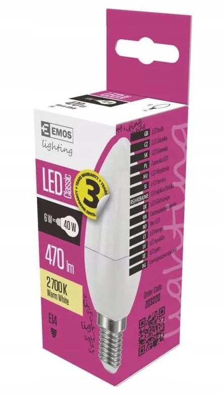EMOS Żarówka świeczka LED Classic 6W E14 ciepła biel ZQ3220