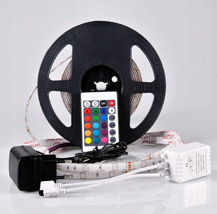 • Informacje dodatkowe: komplet zawiera: taśma LED 5m + sterownik + zasilacz + pilot
