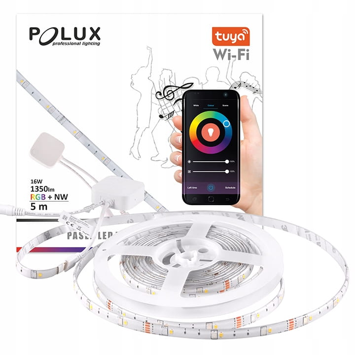 - Wi-Fi SMART LED taśma 5m NW + RGB, 16W, 1350lm, funkcja muzyczna TUYAsmart